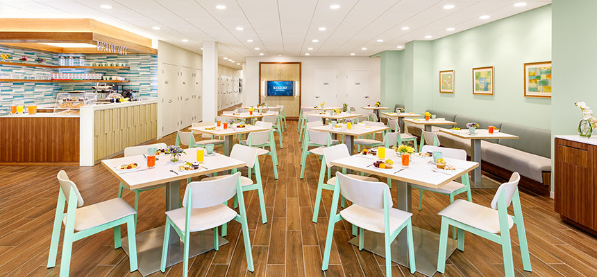 El Café ofrece un lugar de reunión para visitantes que hacen una gira por la Iglesia, aquellos que atienden sus muchos eventos o para feligreses durante los descansos en sus servicios de Scientology.