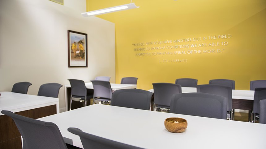 Con la presencia de Scientology en Clearwater y más de 10 000 Scientologists que llaman a esta ciudad su casa, las nuevas instalaciones de los Ministros Voluntarios personifican la aceptación entusiasta de la Iglesia de su papel como proveedor de soluciones para todos en la comunidad.