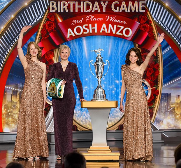 Luego llegó el momento de anunciar a los campeones del Juego de Cumpleaños de LRH. El escenario se transformó en un círculo de ganadores rodeado de rosas, con brillantes luces, sedas y trofeos relucientes. El Juego de Cumpleaños sigue la tradición de honrar al Sr. Hubbard con el regalo de la expansión en cada Iglesia de Scientology.